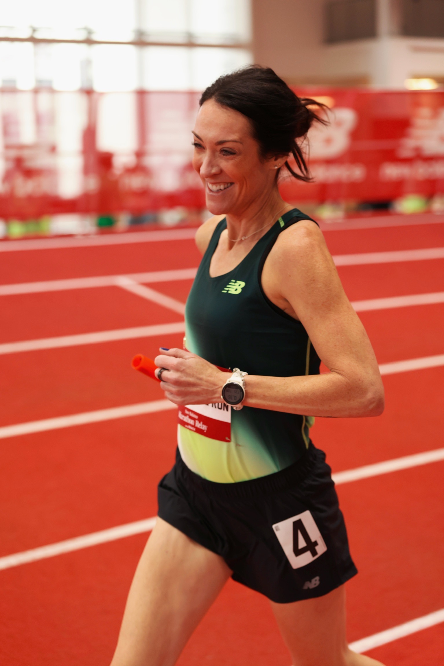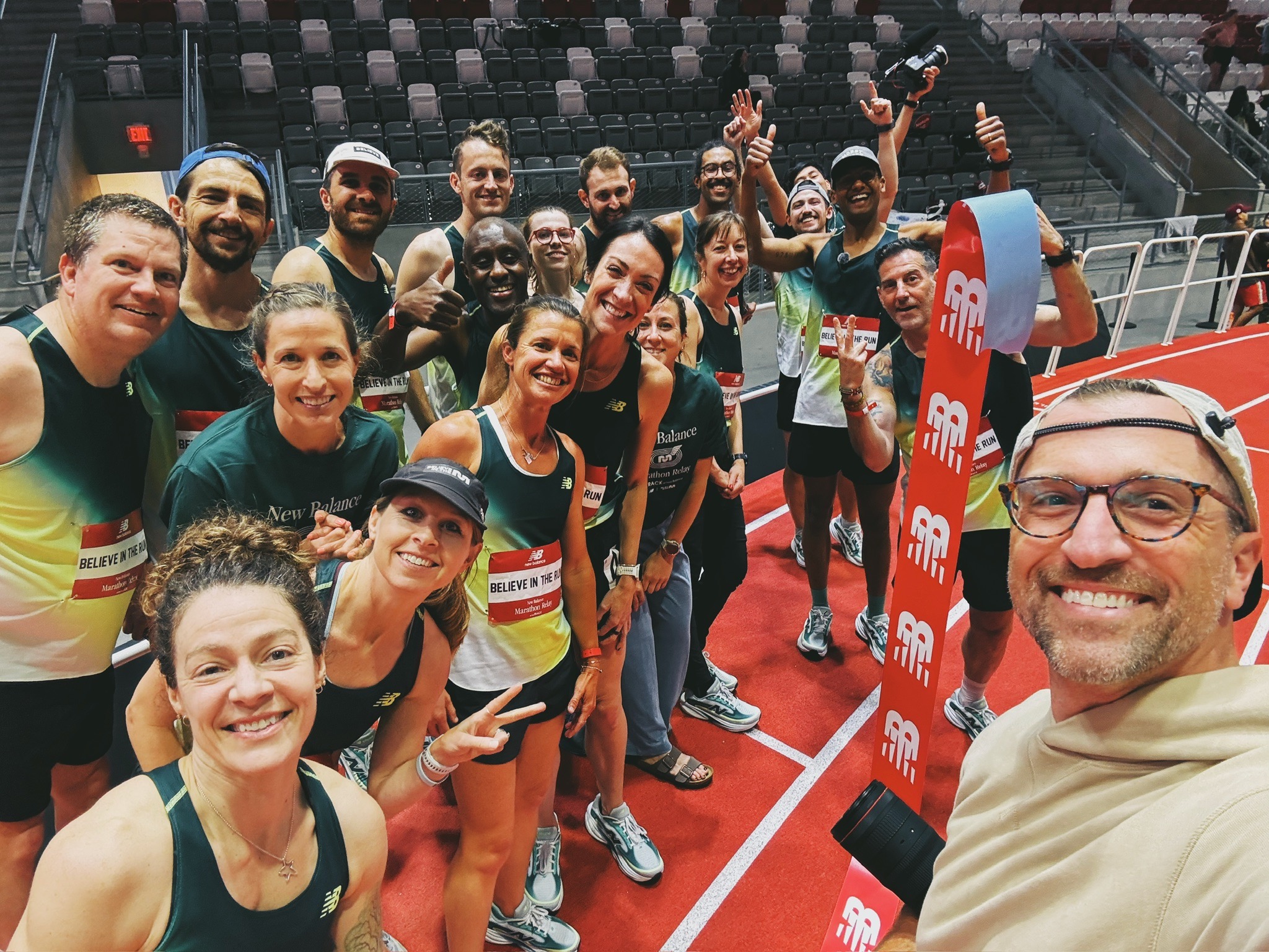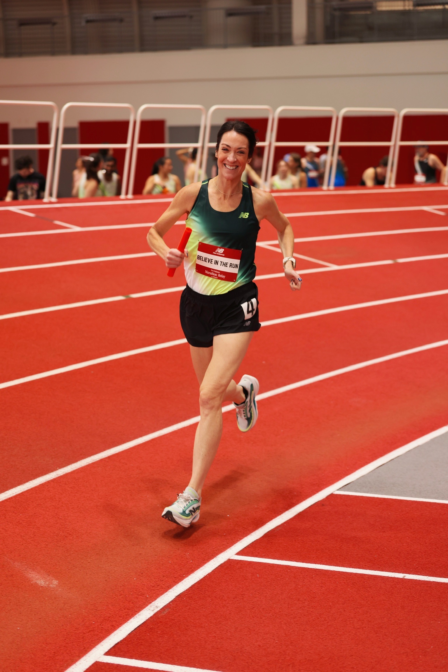 Quick change with my fresh nails, and we were off to the New Balance Marathon Relay at the Track. This was my favorite event from last year’s marathon weekend, so I was stoked to head back. My plan was to fun run my mile out there, but once your feet hit that bouncing track and the crowd is roaring, it’s impossible to have any chill out there. I ended up running a 5:45 mile. Whoops! Our team, Believe in the Run, ran a 2:47 marathon as a team. The highlight of the event was Kim Conley kicking us off with a 4:48 mile. This met her goal of running a sub-5-minute mile for 25 consecutive years. What. A. Run.