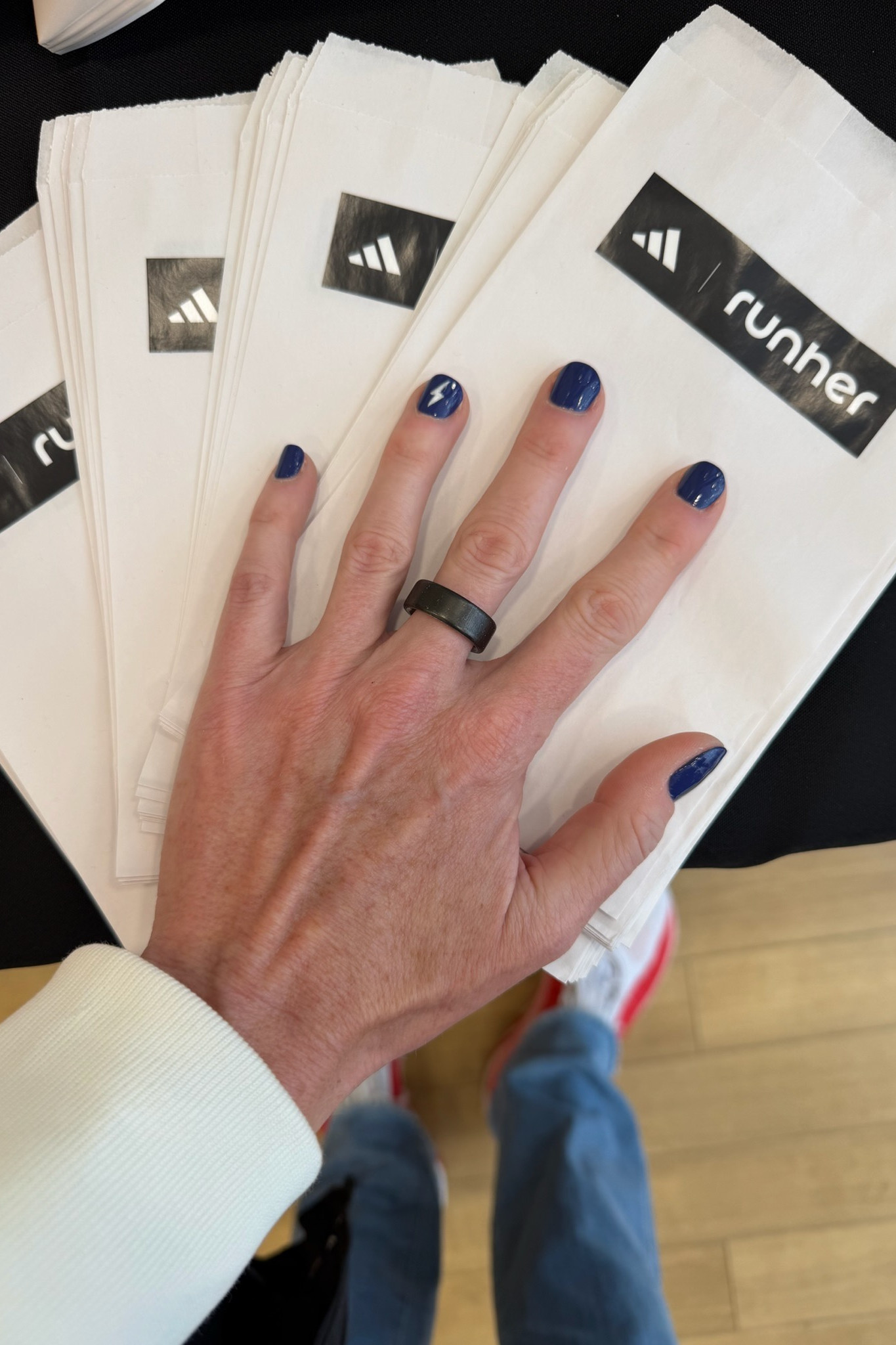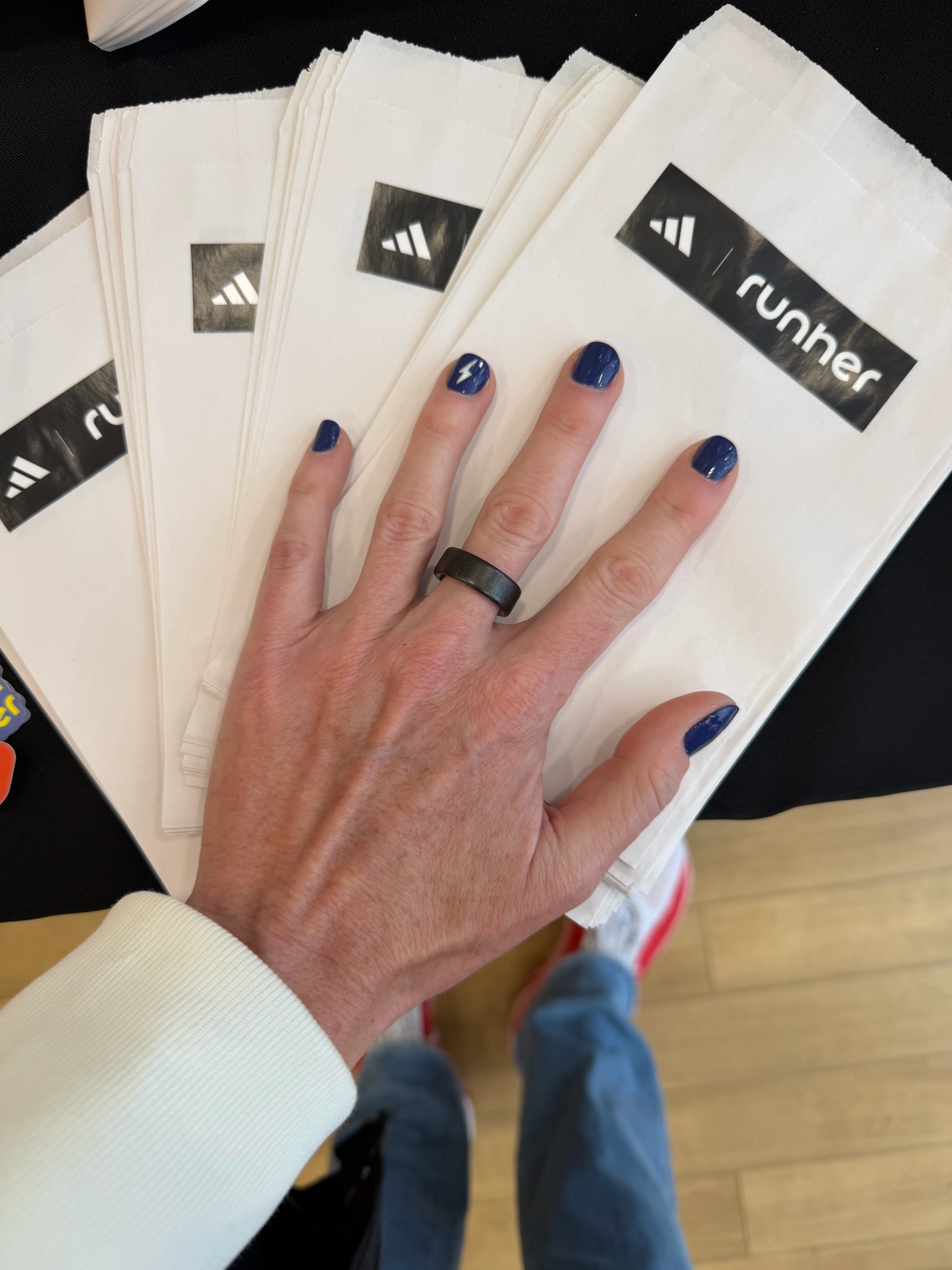 On Saturday, Meg and I spectated the 5k while all the guys from Believe in the Run were running. Fun fact: the grandstands are wide open to anyone during the 5k, so we were able to get front-line viewing at the finish line. This was hands down the moment that lit the fire for me, leading into Marathon Monday. I was so ready to cross that finish line, too. From here, I went to the runher x adidas nail salon event and got my nails painted Boston blue. I am not a nail girl, so this was a fun little event.