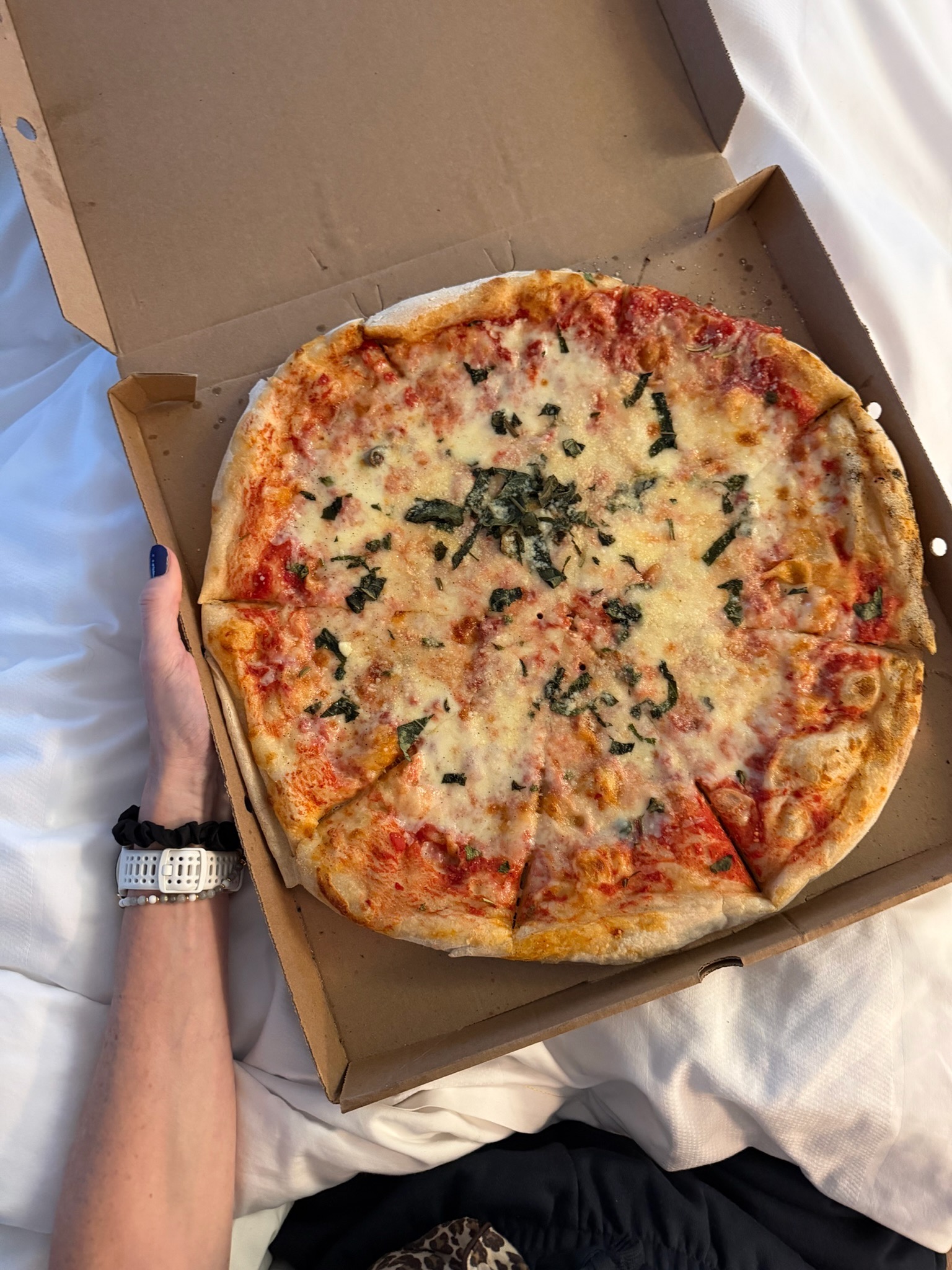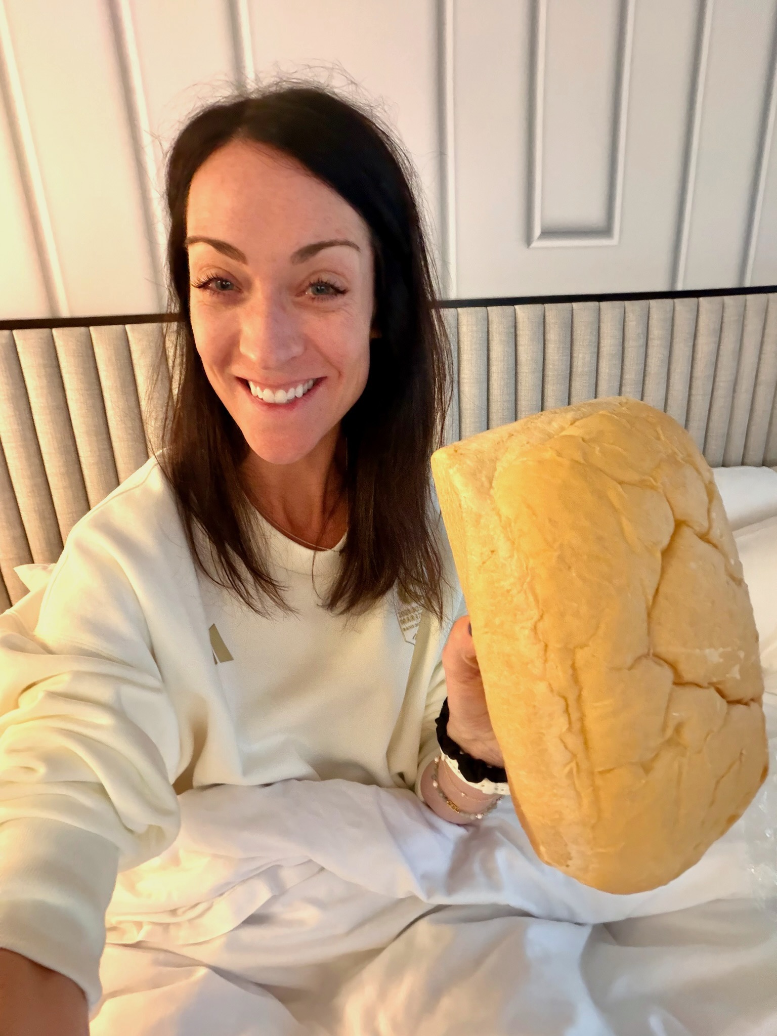 For the rest of the day, I laid in bed watching Big Mistakes and catching up on The Pitt. A client gave me a massive loaf of her favorite bread at the shakeout, so I now encourage ‘Bed Bread’, aka taking a loaf of bread to the face, while lying in bed, carb loading, pre-marathon. I chased my bed bread with a pizza, drank some electrolytes, and hit the hay.
