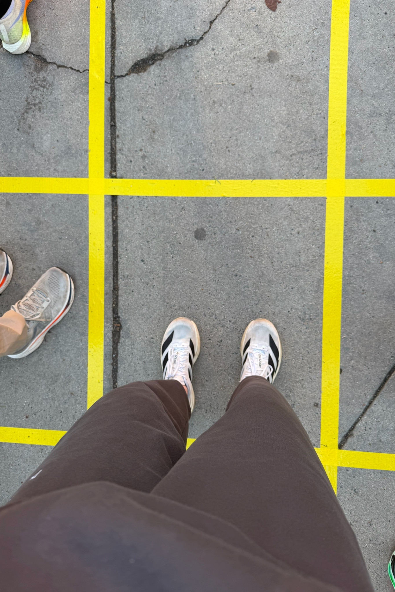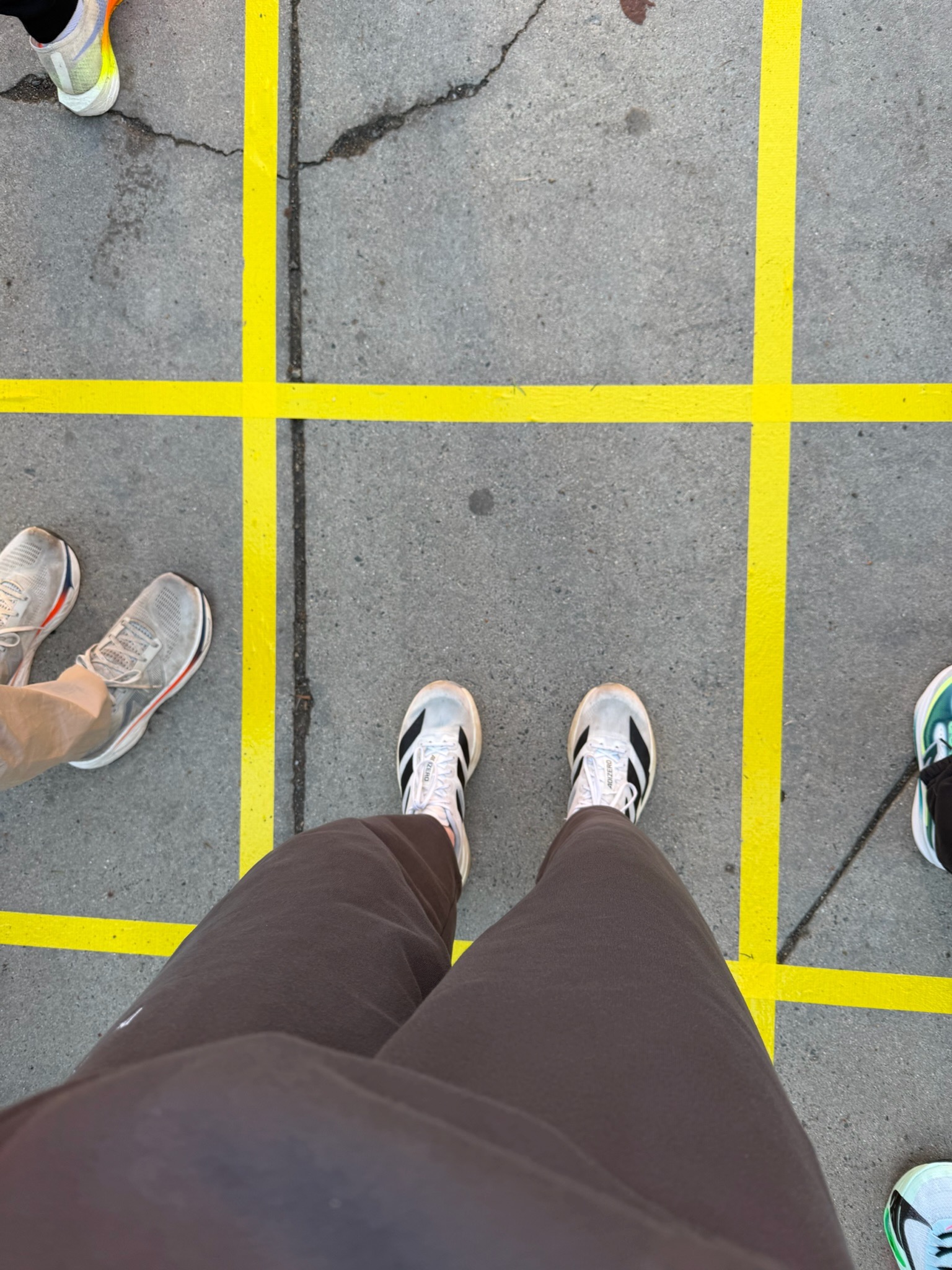 At 6:15 am, I met Meg Murray in the lobby to walk to the buses. We picked up Ben Johnson and headed over to the gardens to load a school bus. They changed up the loading technique since I last ran this race in 2023. There was a grid on the ground and they herded us all into said grid. Each box represented a seat on the bus. Once the grid was filled, we were assigned a bus to load. The logistics that go into this process are wild, and it went super smooth.