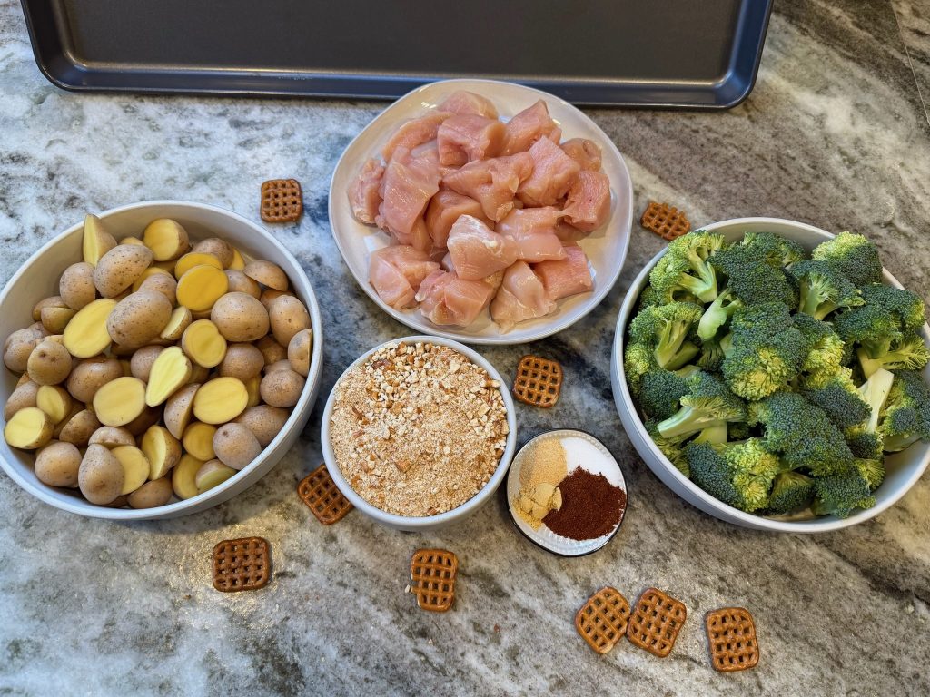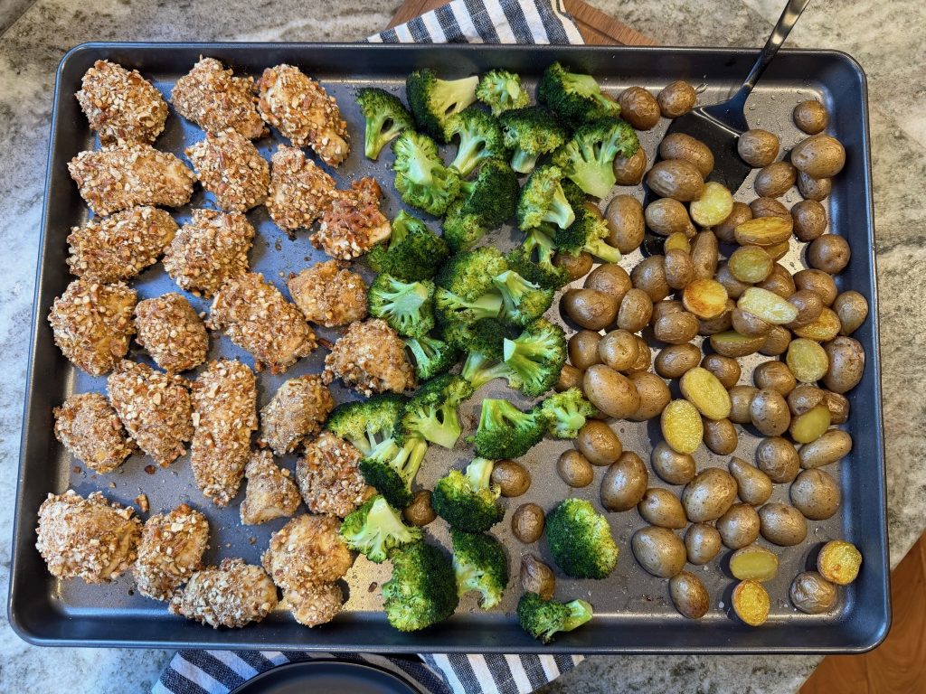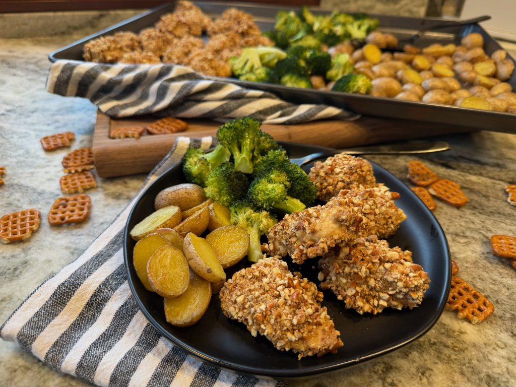 Sheet Pan Pretzel Crusted Chicken Nugget Meal