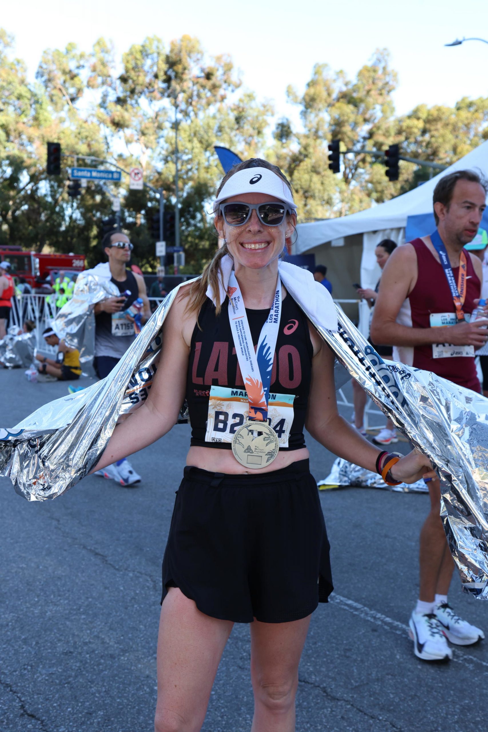 The final eight miles were absolutely brutal—full sun, rolling hills, and temperatures reaching about 85°F by the finish. One LA Times article described the course as a “concrete hellscape,” and honestly… that felt pretty accurate in the moment. And that final hill at mile 26? Truly cruel.